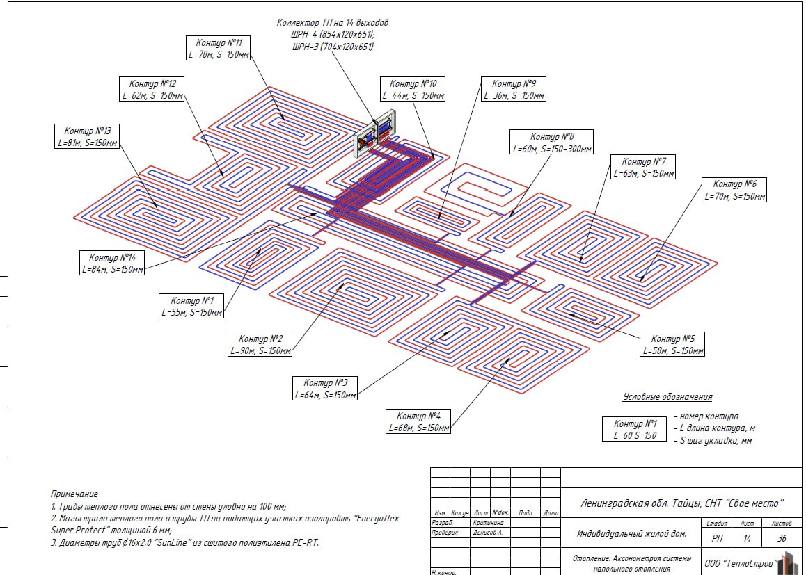 Площадь теплого контура - 120м