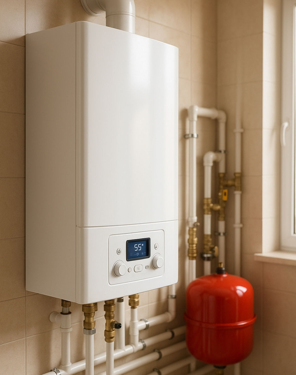 Современный настенный газовый котел в котельной